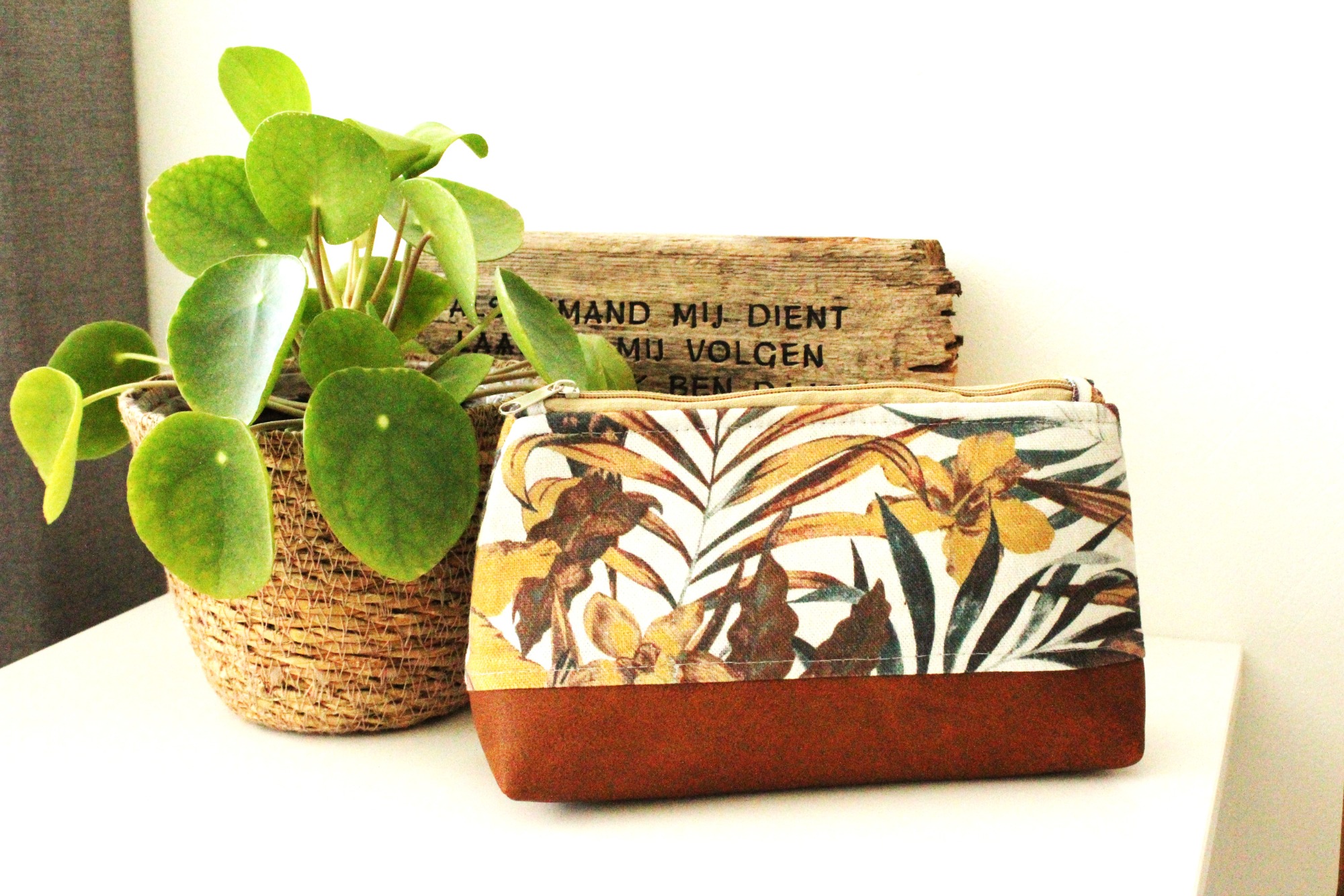 Hieronder foto's van een gepersonaliseerde tas, gemaakt van canvas. De tas heeft een bodem en zijkanten van bijna onverslijtbaar kunstleer. De tas staat op kleine pootjes. Op de voorkant heb ik een print gemaakt. Ook aan de binnenzijde heb ik prints gemaakt, met namen en een bijbeltekst.